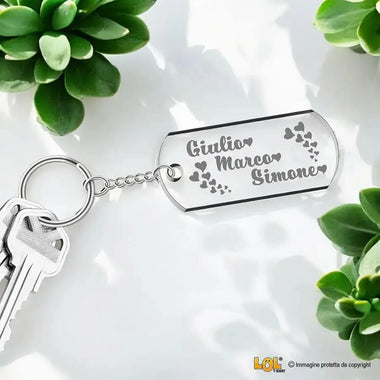 Portachiavi Plexiglass Personalizzato con Nomi Incisi e Cuori