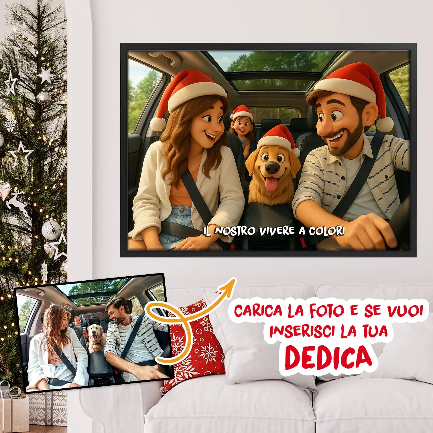 Rendi unico il tuo Natale con un quadro personalizzato natalizio 3D stile cartoon! Carica la tua foto e il nostro team grafico la trasformerà in una splendida illustrazione 3D con cappellini di Natale, pronta per essere stampata con cornice nera.