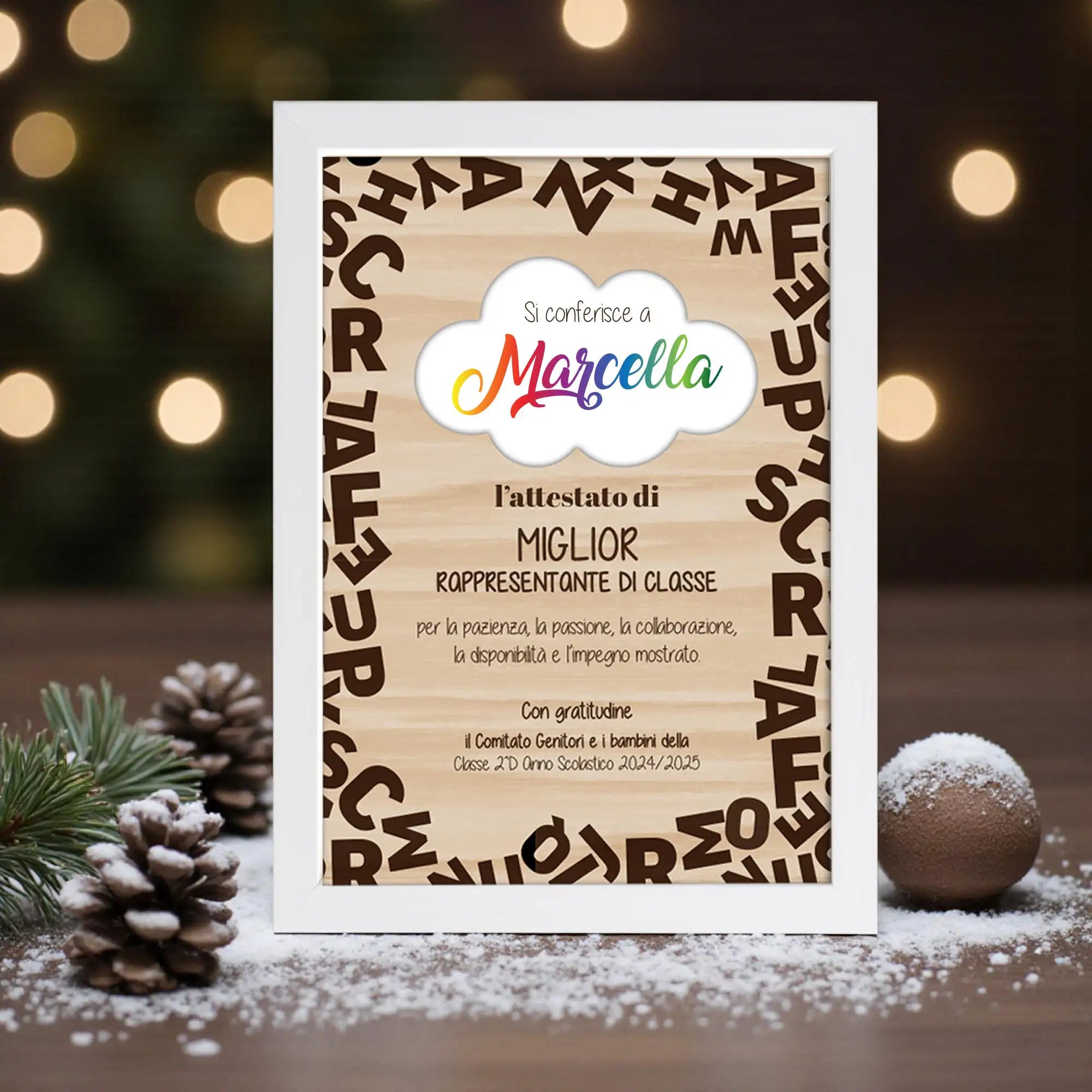 Quadro Attestato Miglior Rappresentante di Classe con Nome Stampato e Cornice Bianca