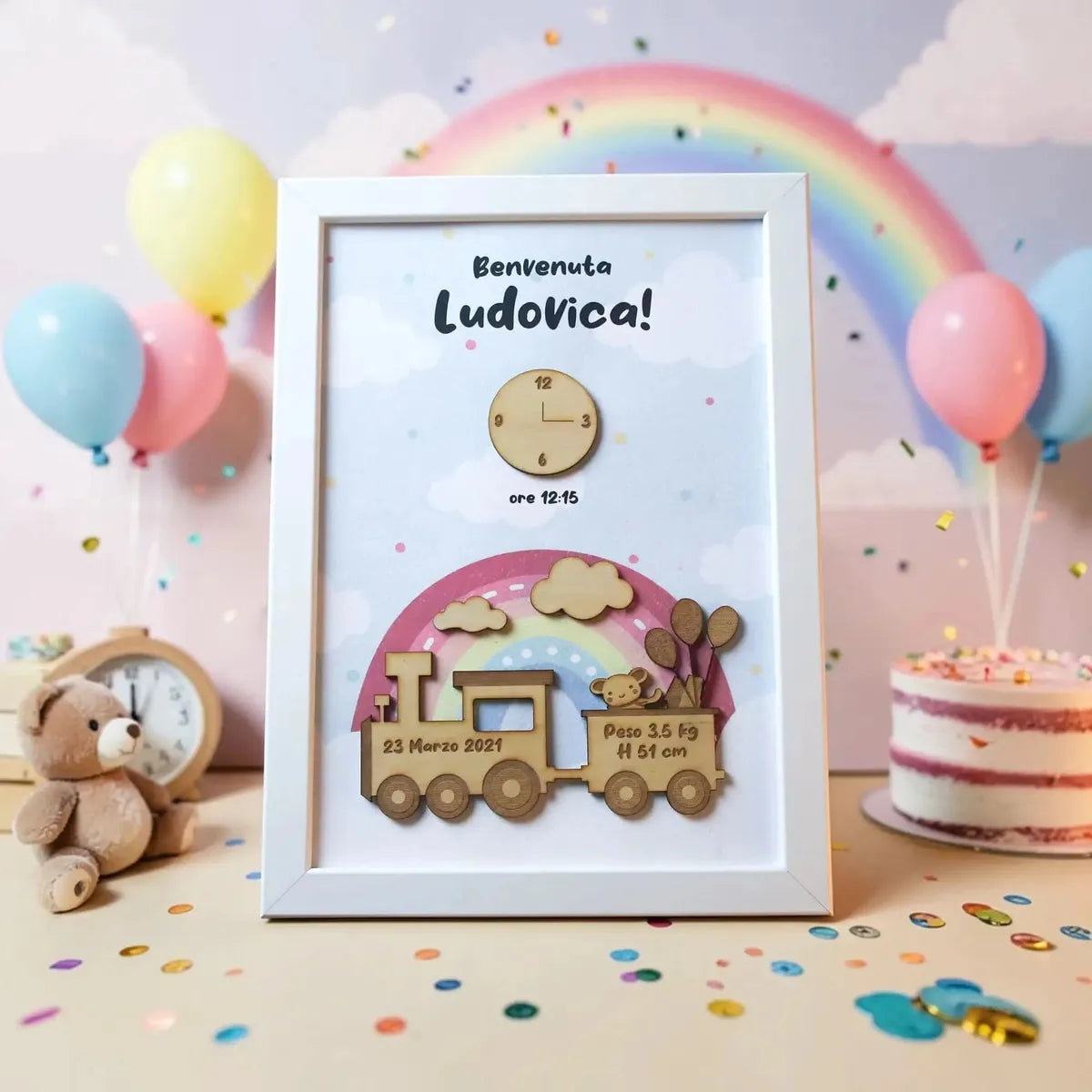 Quadro Nascita Trenino per ricordare la nascita del tuo bambino/a.