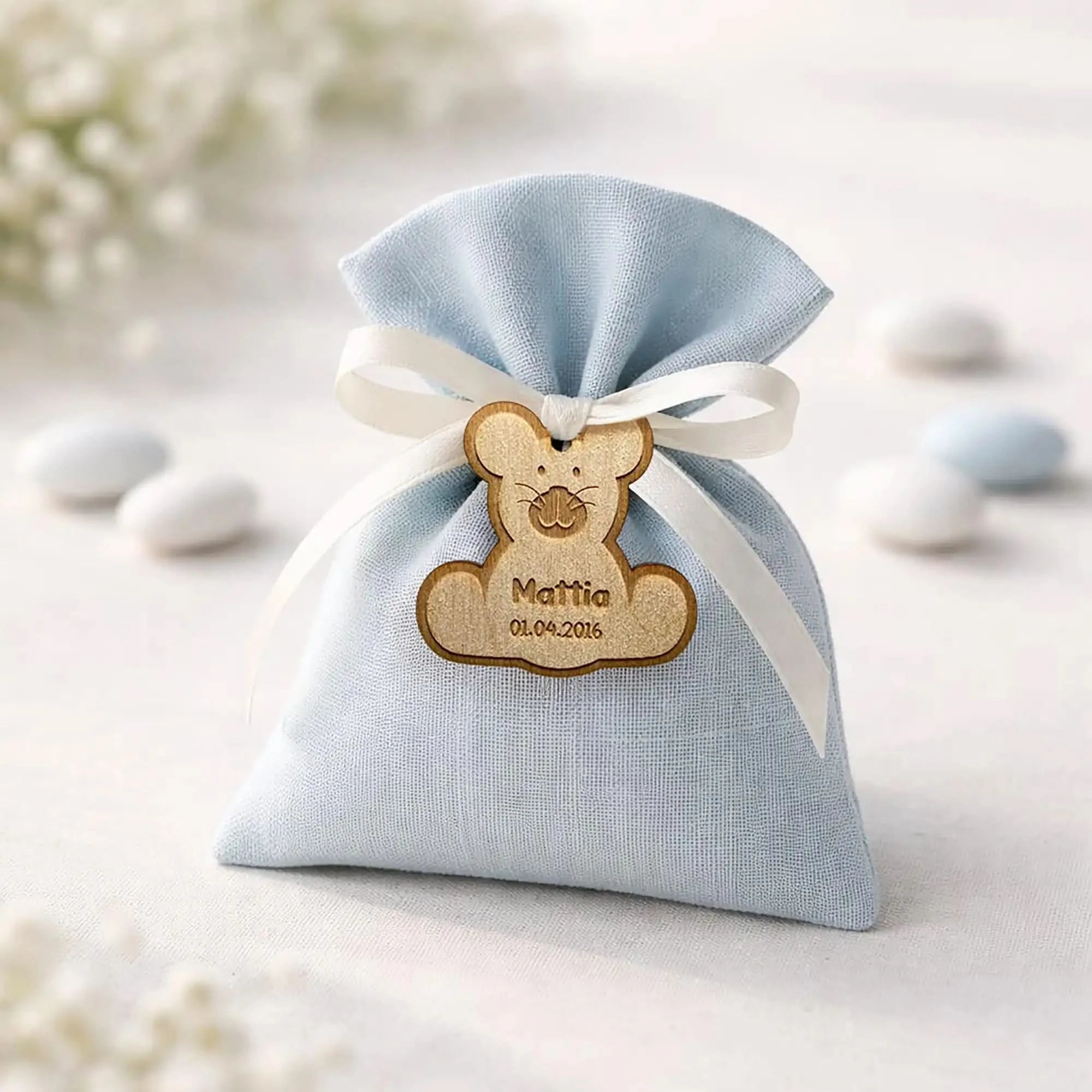 Un piccolo dettaglio può rendere una bomboniera ancora più speciale. I nostri tag nascita in legno a forma di orsetto sono pensati per aggiungere un tocco dolce, curato e personalizzato alle tue creazioni.